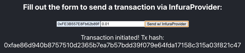 <h3> Fill out the form to send a transaction via InfuraProvider: </h3>